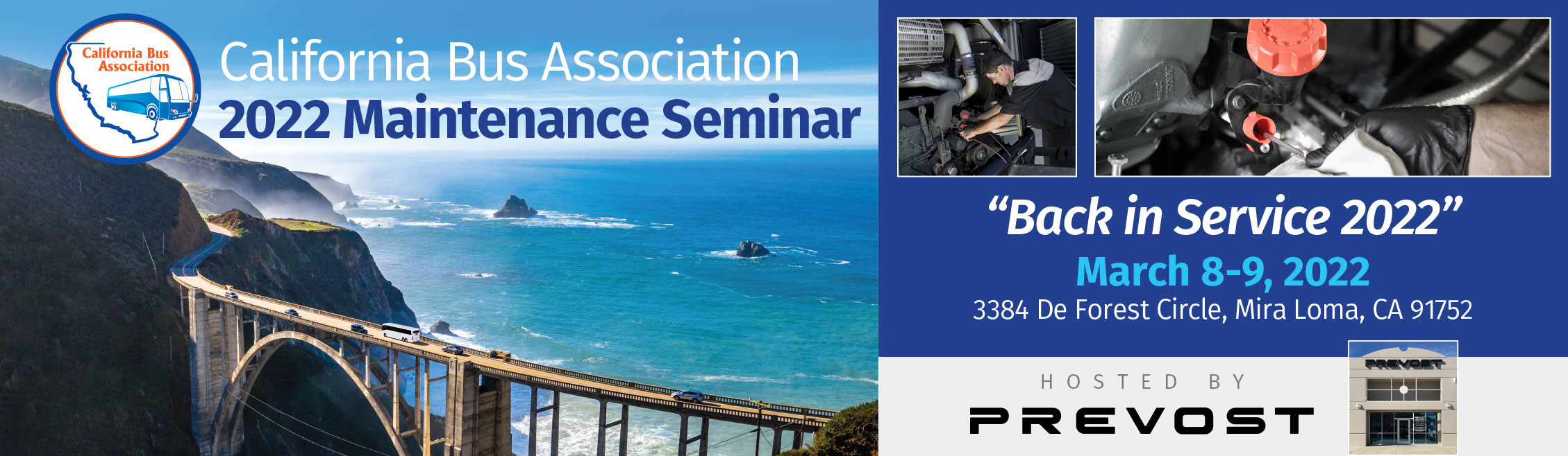 Featuring Presenters* from: Prevost, Motor Coach Industries, ABC Companies, Daimler / Mercedes Benz, Cummins, REI, CHP, US DOT, CARB, and more!
